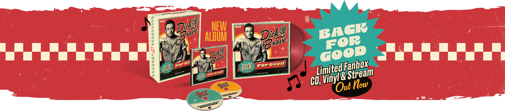 Er ist zurück. Wirklich zurück. Und diesmal Back for Good: Dick Brave, Deutschlands berühmtester Rock ’n’ Roller mit Pomade, Attitüde und unerschütterlicher Jukebox- Seele, veröffentlichte am 23. Januar 2026 sein brandneues Doppelalbum – ein spektakuläres Comeback, auf das Fans seit Jahren gewartet haben. Mit seiner unver- wechselbaren Mischung aus Rockabilly-Energie, Vintage-Charme und modernem Augen- zwinkern kehrt Dick Brave genau dorthin zurück, wo er hingehört: ins Rampenlicht. Und wie es sich für ein echtes Comeback gehört, widmet sich Teil 1 des Albums den größten Revival-Hymnen aller Zeiten – neu interpretiert im unnachahmlichen Dick-Brave-Sound. VonBack for Good über I’m Still Standing bis Suspicious Minds: Diese Songs haben Karrieren neu entfacht und tun es jetzt erneut – nur diesmal mit ordentlich Rockabilly im Tank.